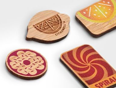 Wooden custom shape lapel pins: $0.45 / 1.000pcs.